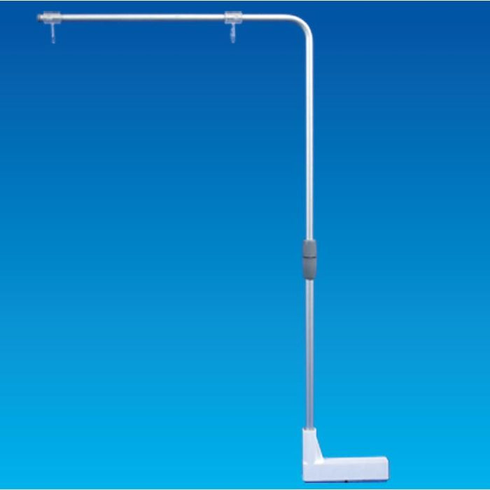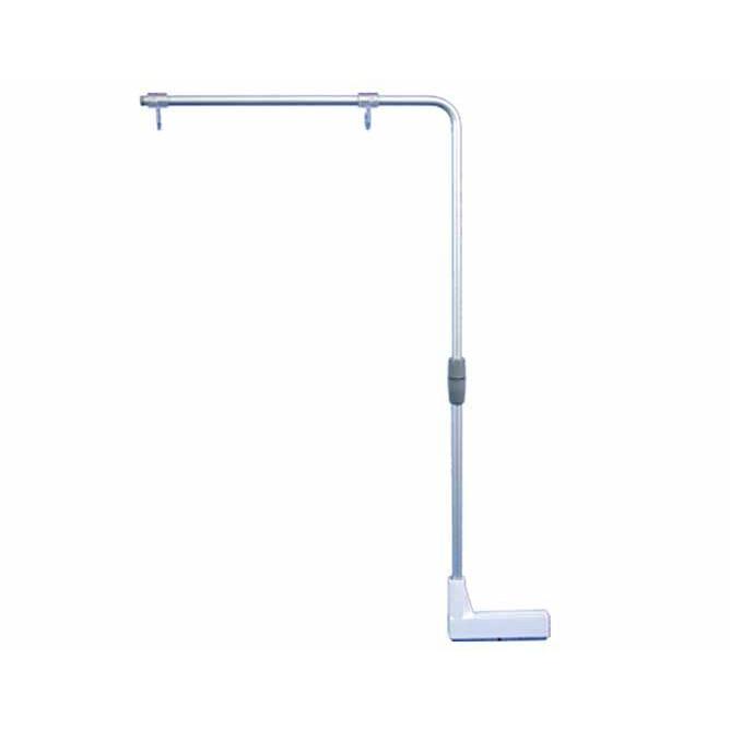 Two transparent hooks are designed on the pole and can be slid across for adjustment.