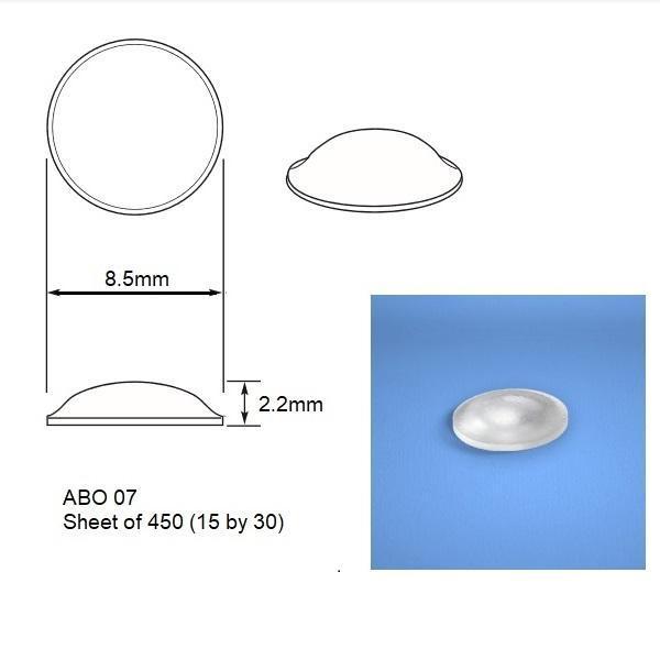 450 per sheet, round/dome shape, 8.5mm diameter, 2.2mm height